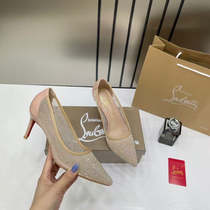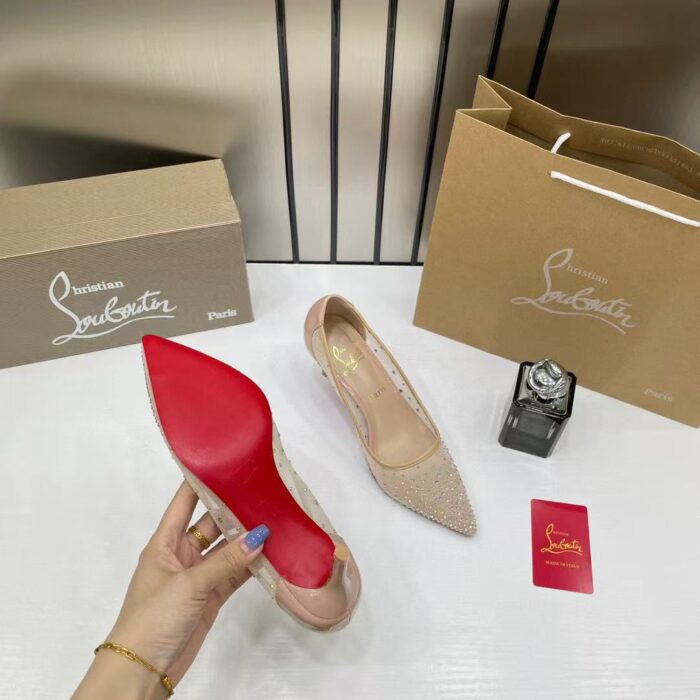 Christian Louboutin Follies Strass Women Pumps Heel With OG Box & Dust Cover Apricot💕