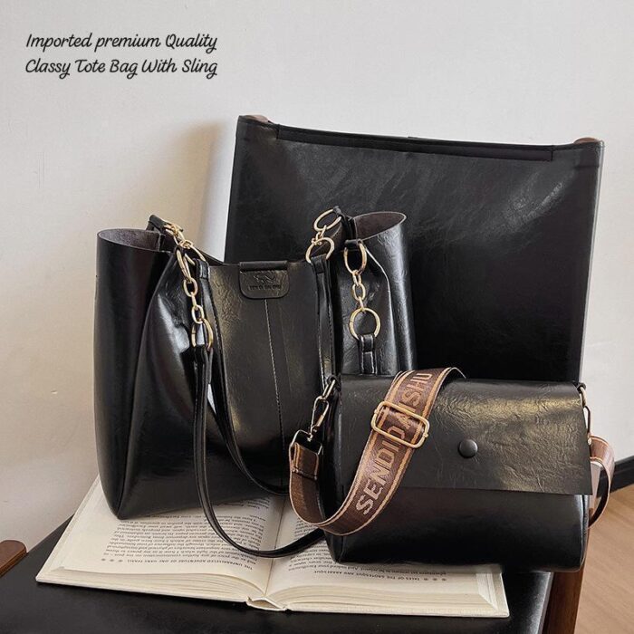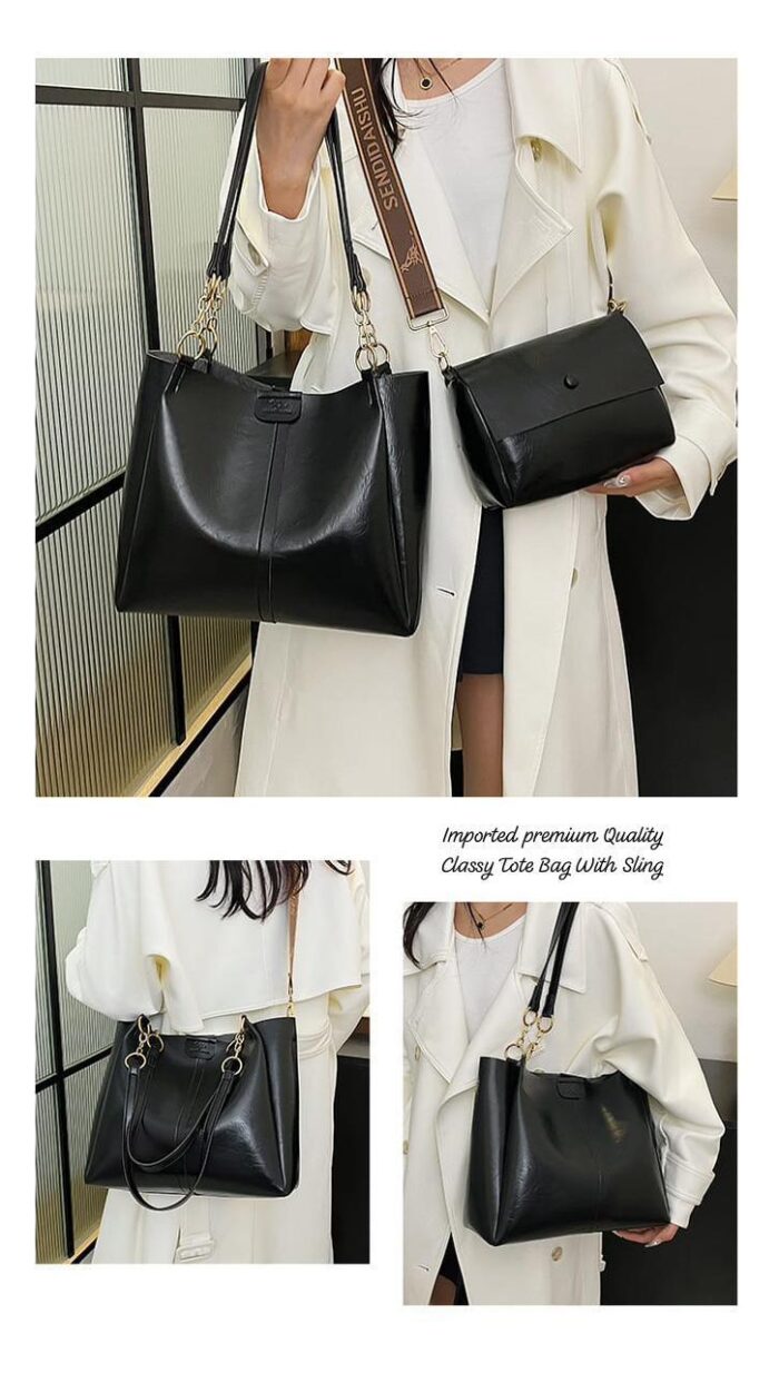 Imported premium Quality Very Beautiful & Classy 2 Psc Set TOTE BAG With Broad Belt Sling Bag